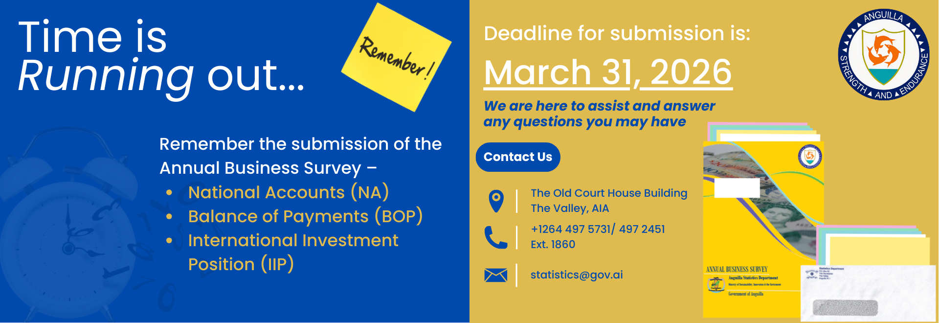 Let me take this opportunity to welcome you to the newly remodeled Anguilla Statistics Department (ASD) website. It has been years of research and work to get to this point. It would not have been possible without the assistance of the Department of Information Technology and E-Government Services of the Government of Anguilla.Recent Data
